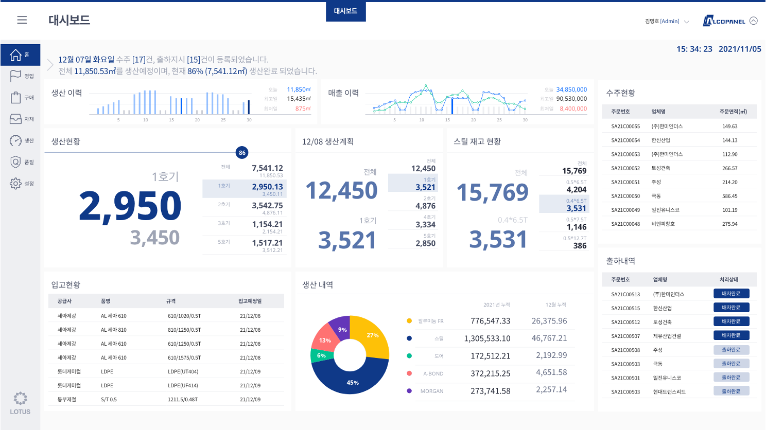 LOTUS MES 통합 대시보드 — 생산·재고·수주·출하 현황을 단일 화면에서 실시간 모니터링